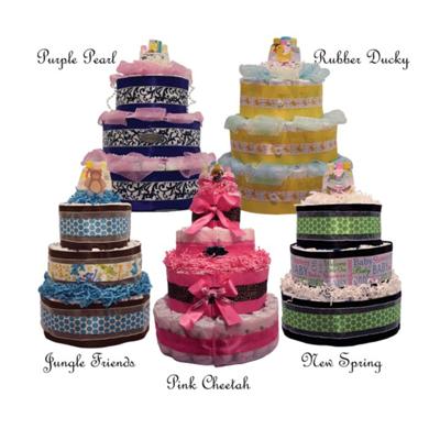 Sophie's Diaper Cakes make a unique baby gift, or centerpiece, for baby showers! Each diaper cake is hand assembled and made with Huggies diapers or any other brand if requested. Our Diaper cakes are custom made to your perfection. Check out our selection of beautiful baby cakes, and order one today!