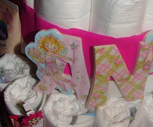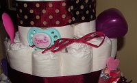 Viele weitere wertvolle Tips, Photos und Ideen zum Dekorieren einer Windeltorte finden Sie hier (in englischer Sprache).