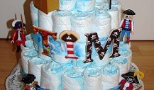 Zum Windeltorte Basteln fangen Sie zuerst mit der Windeltorten Anleitung an und machen die 'rohe Windeltorte'. Je nach Belieben kann diese 1-stöckig, 2-stöckig oder auch 3-stöckig sein.